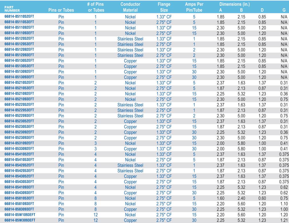 所有电气额定值均基于一侧在干燥大气环境中,另一侧在< 1 x 10 -4 Torr 的真空环境中运行。