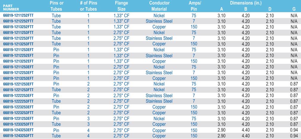 所有电气额定值均基于一侧在干燥大气环境中,另一侧在< 1 x 10