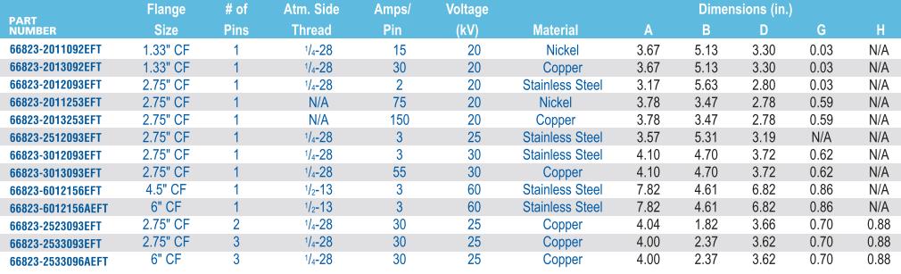 所有电气额定值均基于一侧在干燥大气环境中,另一侧在< 1 x 10