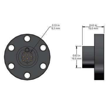 CF Multi-pin Type C Lead-in Flange Multi-Pin Sub-C Type Feedthroughs (MPCT) Specifically designed for applications with limited space, the compact design allows for the installation of small-sized flanges. Both CF16 and KF16 type flanges can be used. These multi-pin instrument lead-ins feature a circular bayonet locking connector on the air side and crimp pins on the vacuum side. It has a 9-pin configuration. The gold-plated pins adopt a through-type design. Voltage (V): 500 Current (A): 5/PIN Number of Conductors: 9; 18 (2*9) Conductor Material: Gold-plated stainless steel Insulator Material: Glass-ceramics Flange Installation: CF16; CF35 Vacuum Degree: 1×10⁻¹⁰ Torr CF Metal Seal: -200°C to 450°C Maximum Heating Rate: 25°C per minute Both 2D and 3D models are available. Non-standard customization is accepted. If you have any requirements, you can consult our sales engineers. Remarks: The marked technical parameters are subject to various conditions, such as material properties, mechanical design, and operating environment. All electrical ratings are based on the operation with one side in a dry atmospheric environment and the other side in a vacuum environment of less than 1×10⁻⁴ Torr. All 3D models and any dimensions shown or listed in our catalog do not include manufacturing tolerances and are for reference only.