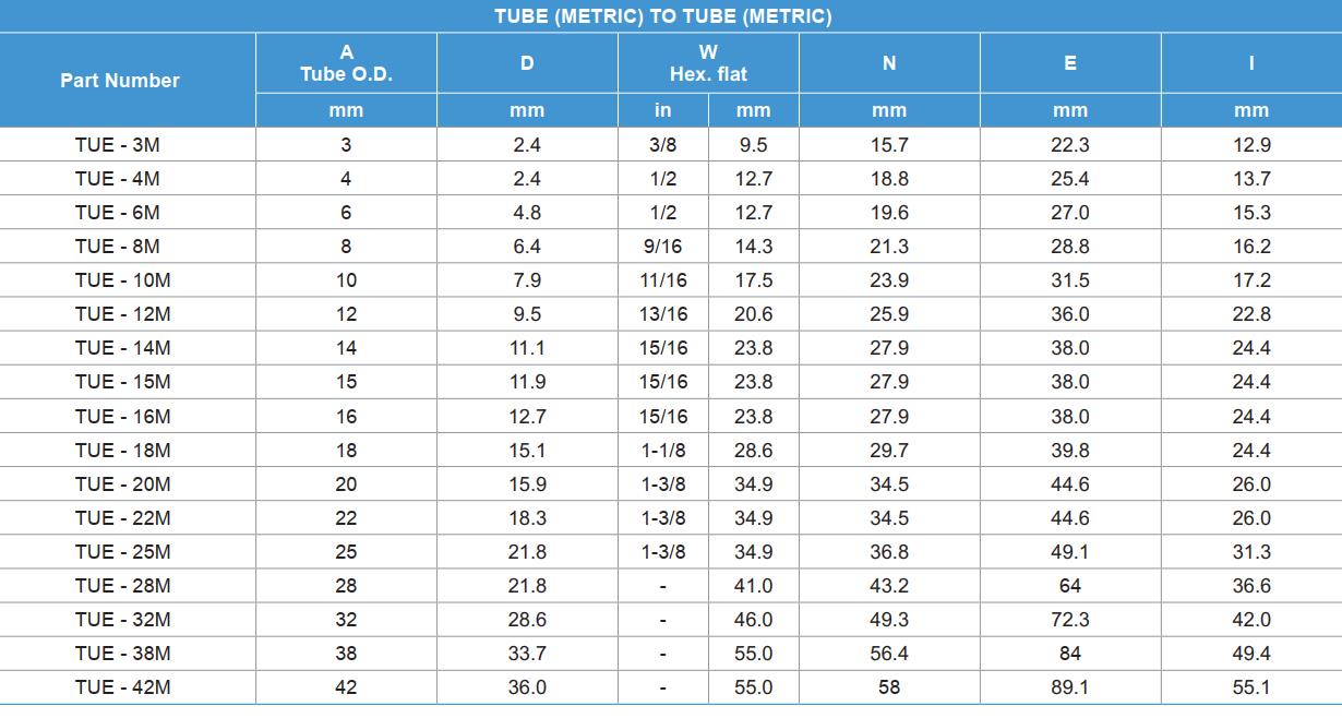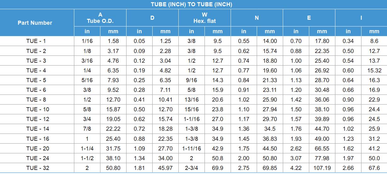 尺寸范围从1/16"-2",2mm-50mm。