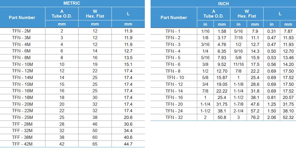 尺寸范围从1/16"-2",2mm-50mm。