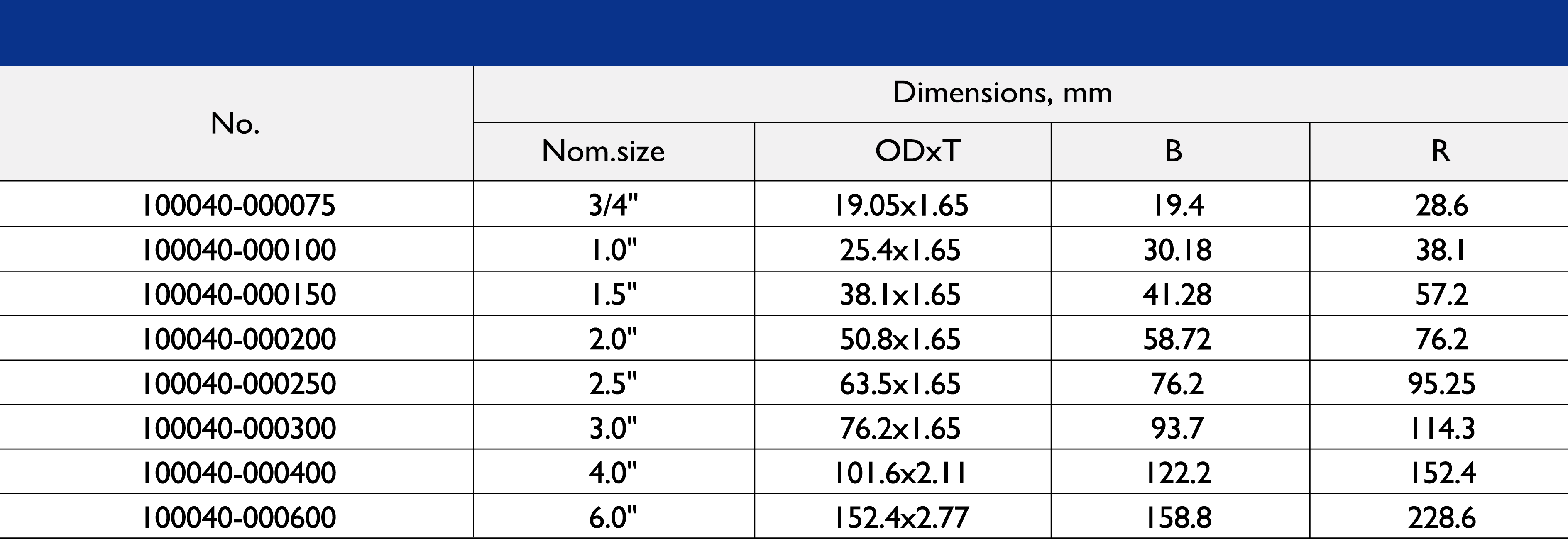 Size Range: 1/2" to 10"