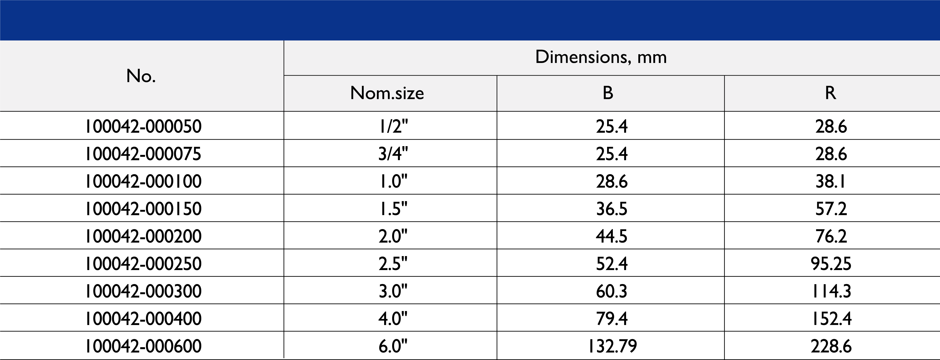 Size Range: 1/2" to 10"