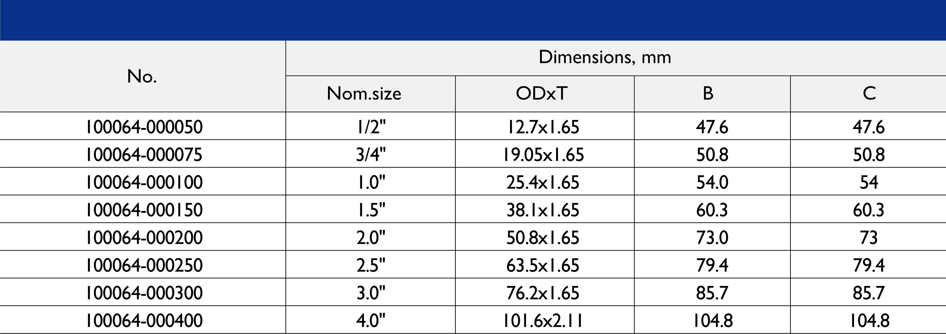Size Range: 1/2" to 10"