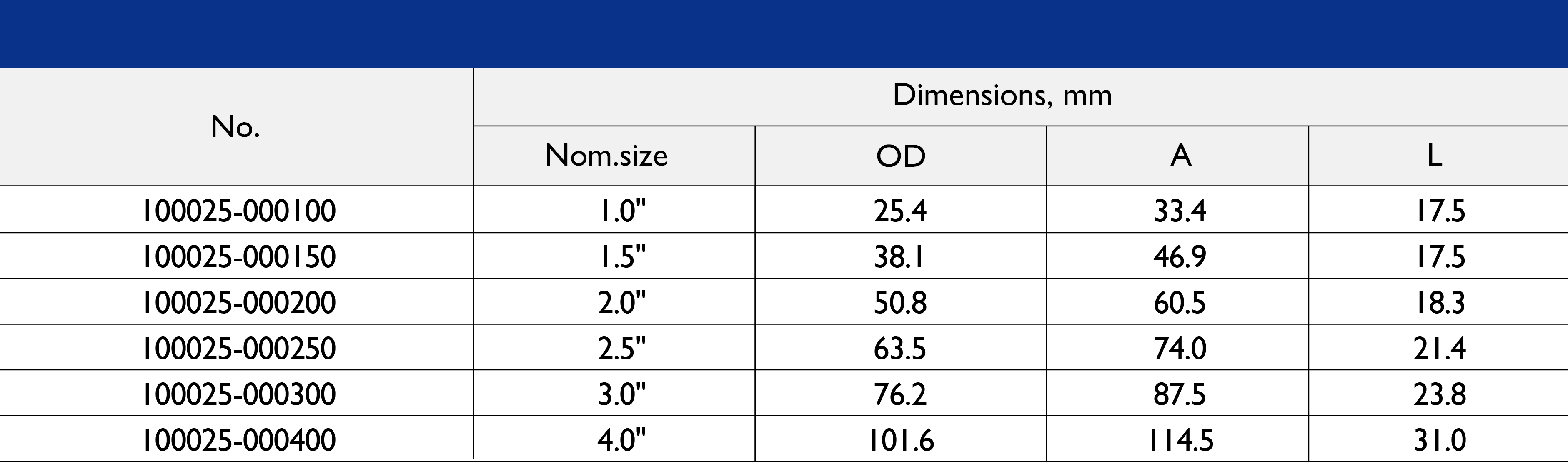 Size Range: 1/2" to 10"