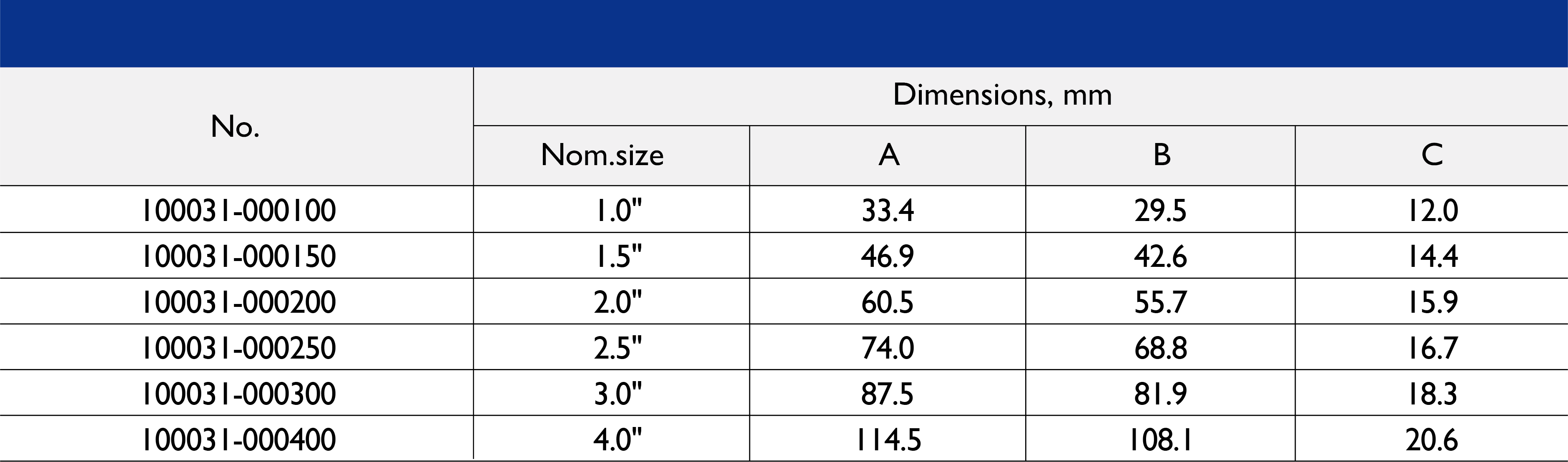 Size Range: 1/2" to 10"