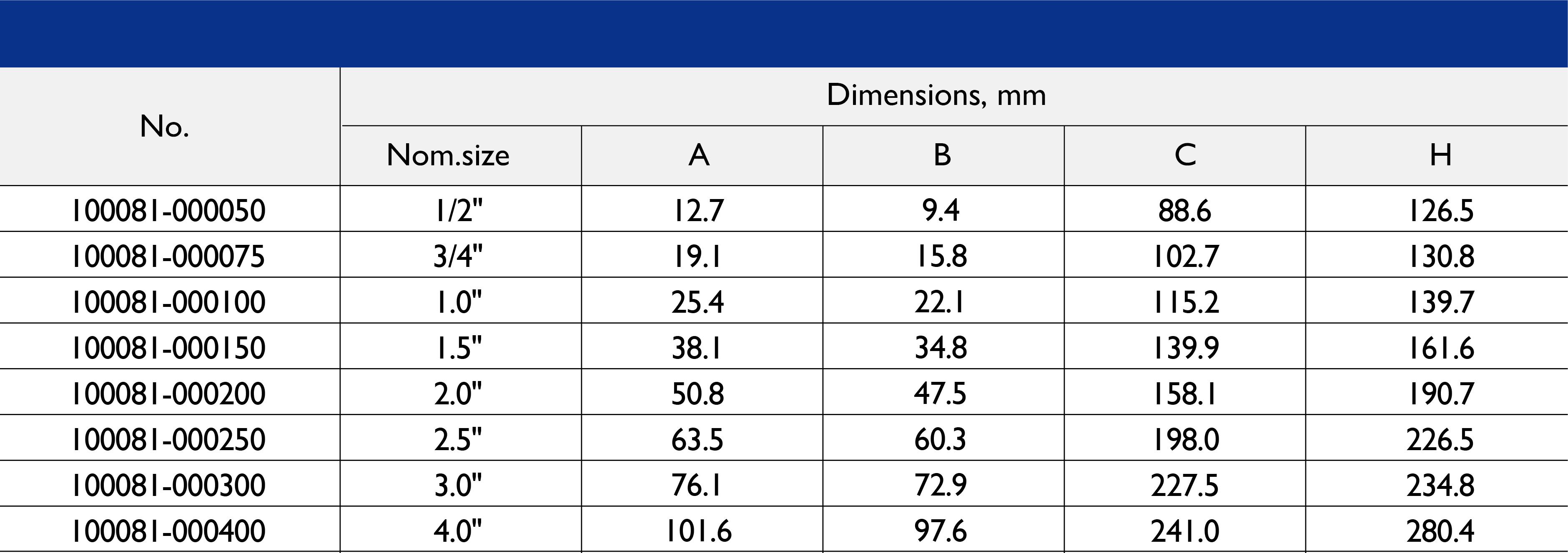 • Size parameters